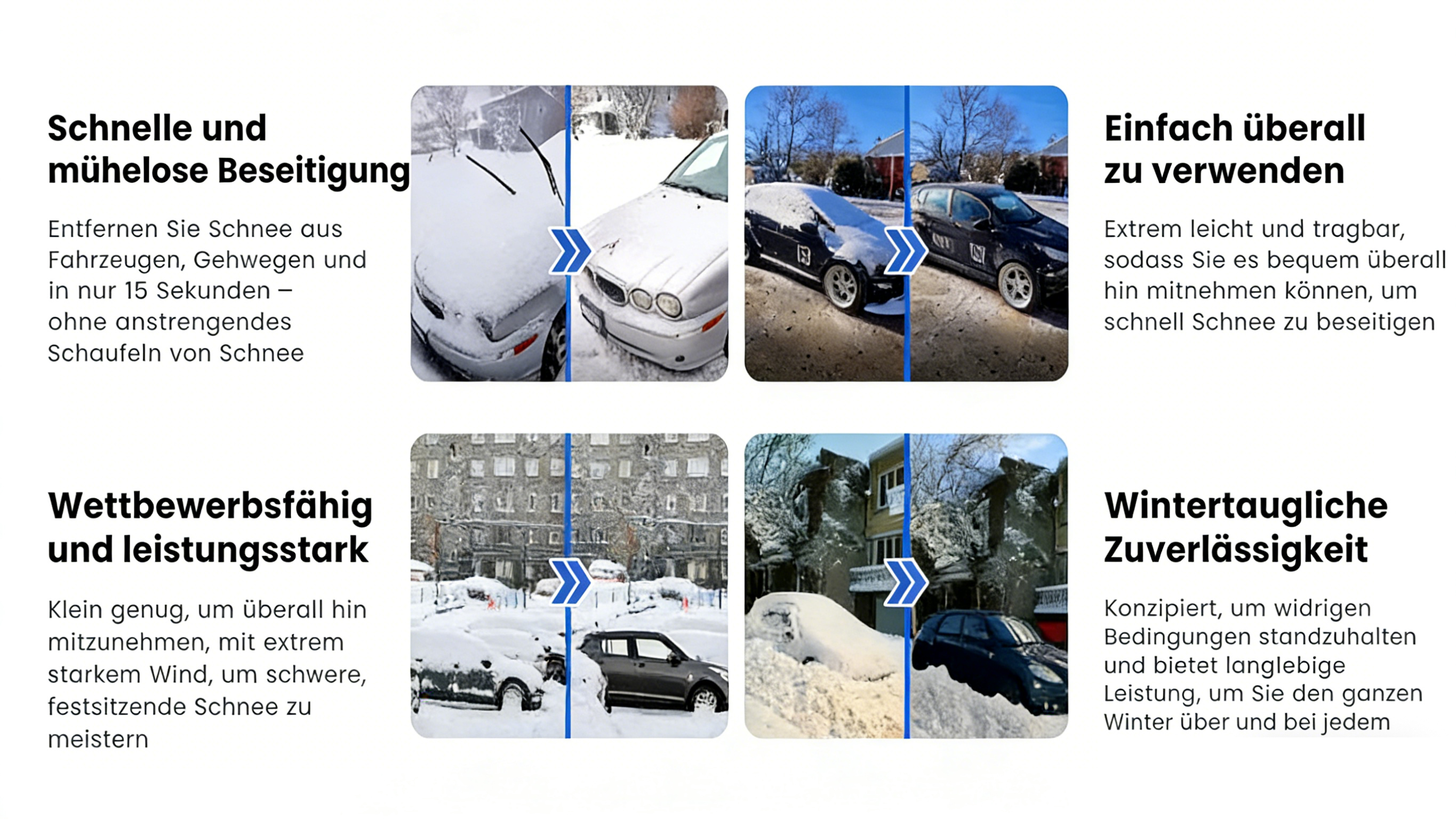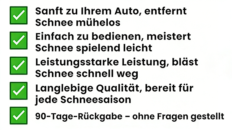 Seien Sie jederzeit auf jede Schneesituation vorbereitet, ohne den jährlichen Kampf, und genießen Sie einen einfacheren, sorgenfreien Winter.“