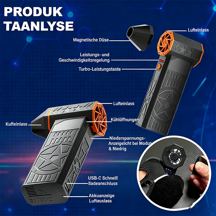 TAILEDEN ist mit einem drehmomentstarken bürstenlosen Motor in Kombination mit einem optimierten Heißluftkanal ausgestattet, wodurch das Gerät eine stabile und hocheffiziente Leistung liefert.