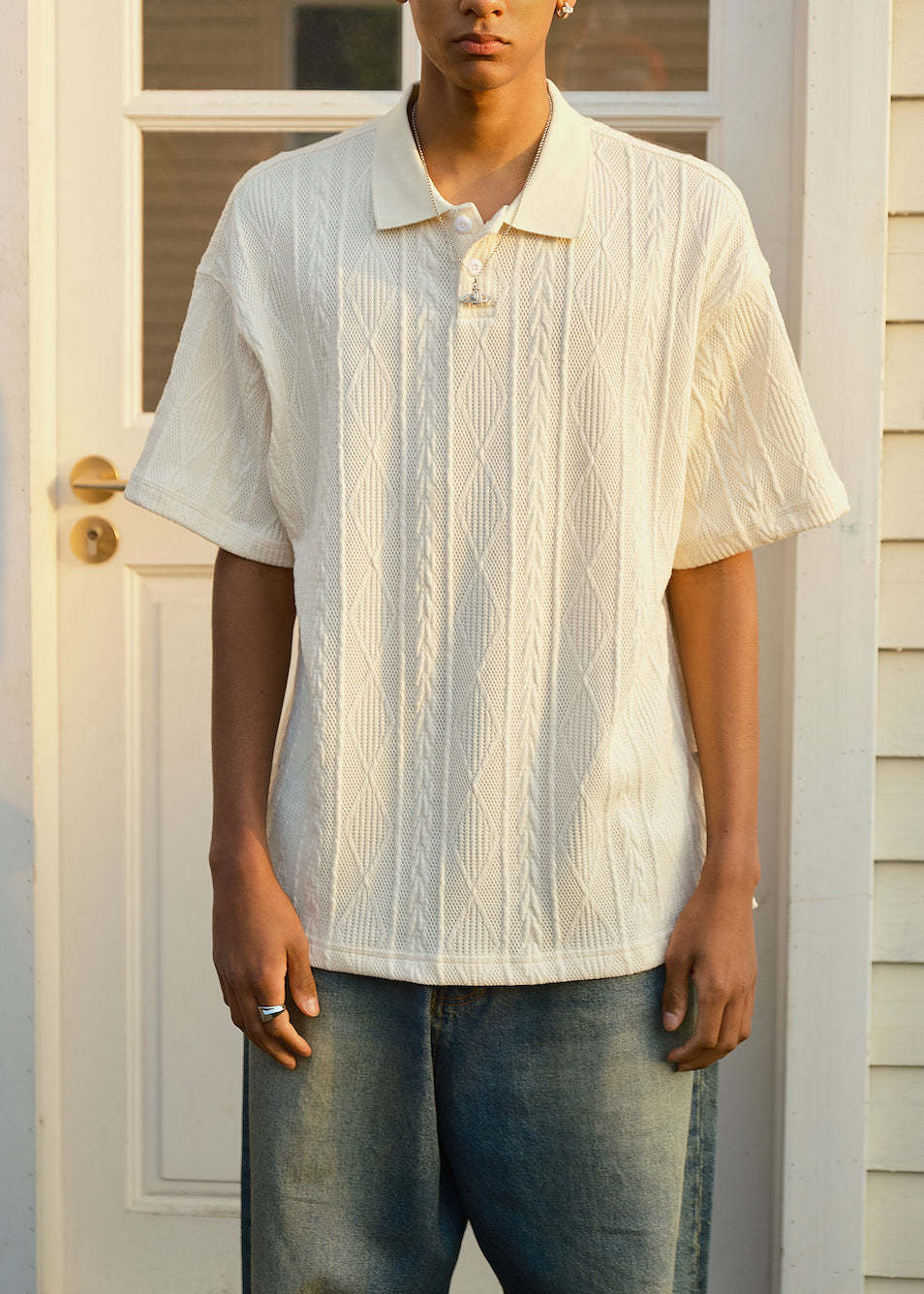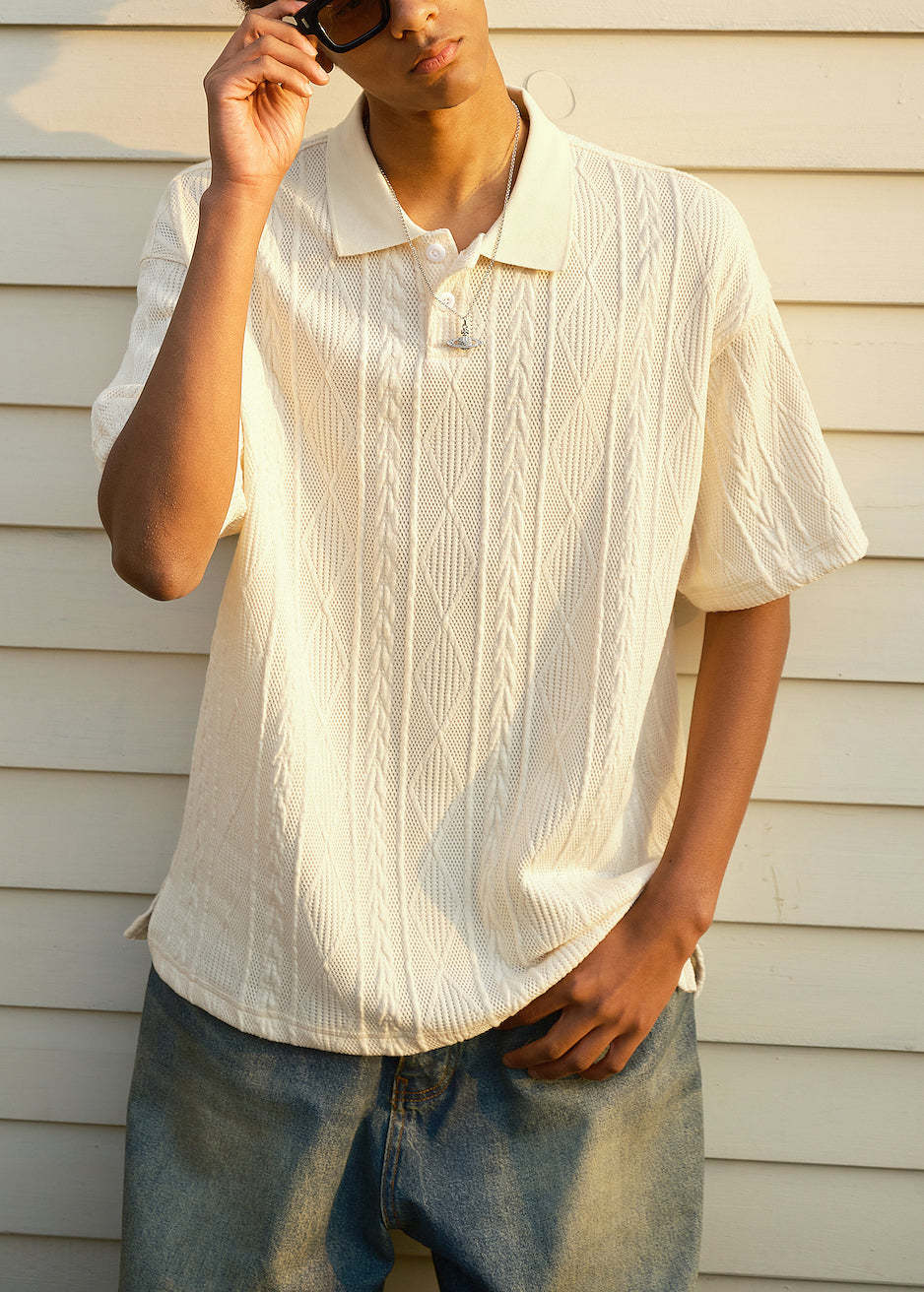 Simple Beige Button Solid Mens Polo Shirts Summer